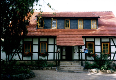 Blick über den ehemaligen Schulhof auf das Gasthaus