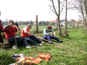 Bevor die Weiden verbaut werden können, müssen störende Äste und Zweige entfernt werden.