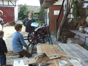 Wie alle Geräte mit Kurbeln und Zahnrädern kommt auch der Reißer bei Schulkindern im Rahmen des Hanfprojektes gut an.