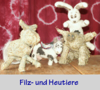 Die größeren Kinder gestalten oft die Tiere des Bauernhofes in kleinen Filzplastiken oder Wandbildern nach, Jugendliche und Erwachsene können sich nach einer kleinen Einarbeitung auch schon an einen Hut, Pantoffel oder eine Tasche heranwagen.