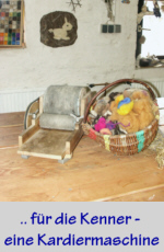 Wolle kann am Spinnrad versponnen werden, aber das erfordert schon ein gewisses Fingerspitzengefühl oder auch verfilzt werden. Hier kommen auch schon die kleinsten Kinder zum Einsatz, ein lustiger Ball ist auch für Kindergartenkinder kein großes Problem.