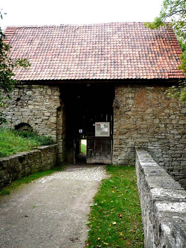 Fotos: Doppelkapelle von außen(oben), inneres Torhaus(links),